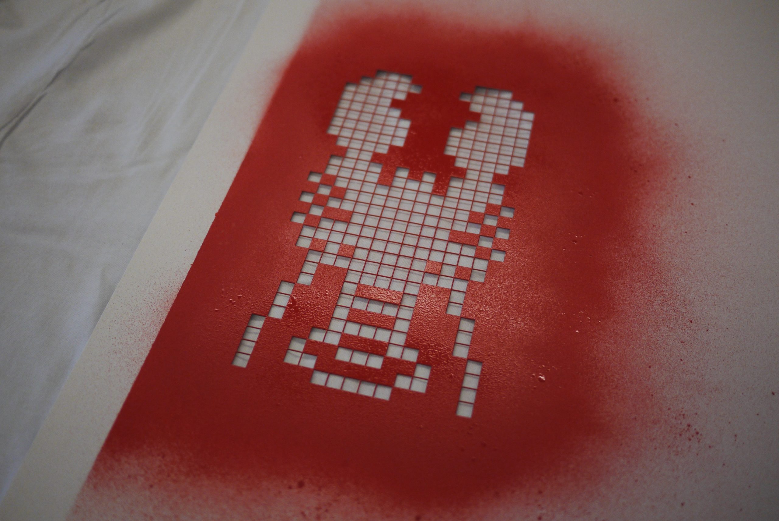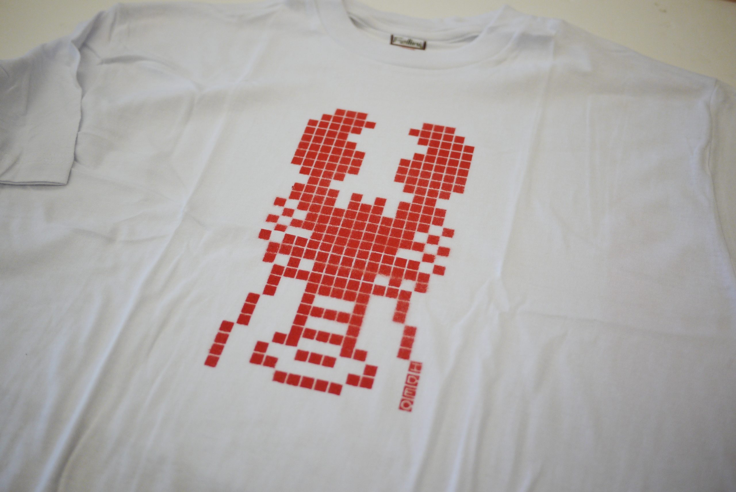 IDEO Summer Outing T-shirt spray painted prototype to get the size and spacing right.